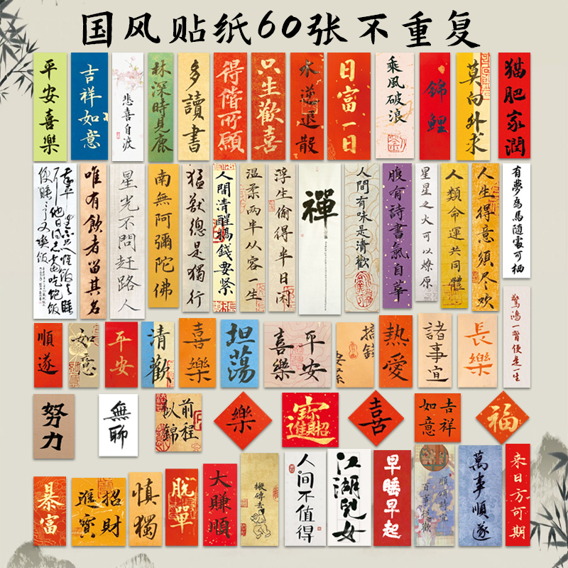 Chinese Style Calligraphy Small Paper Creative Text Stickers Small Pattern Inspirational Phone Case Scrapbooking Material Stickers