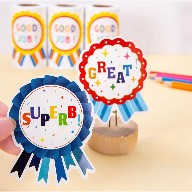 Children’s Praise Medal Primary School Kindergarten English Encouragement Stick Classroom Teacher Praise Medal Large Cartoon Brooch