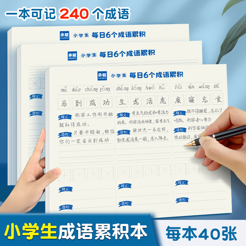 Daily 6 Idioms Essential for First Grade Chinese Language Class – Grid Memorization Notebook for Idioms and Pinyin