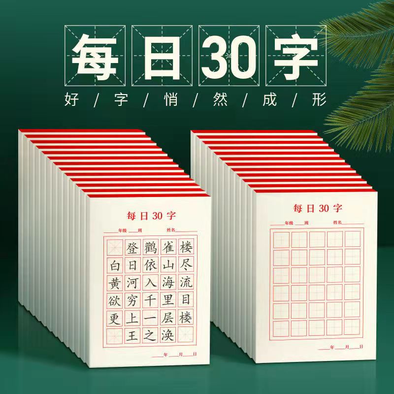 Daily Practice 30-Character Grid Practice Book for Elementary School Students, Thickened Hard Pen Calligraphy Paper