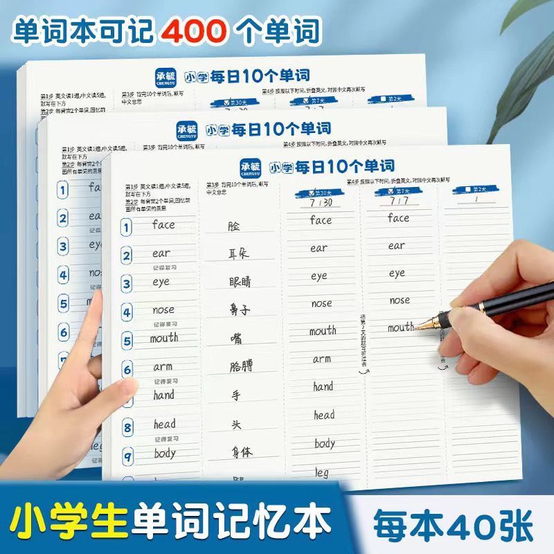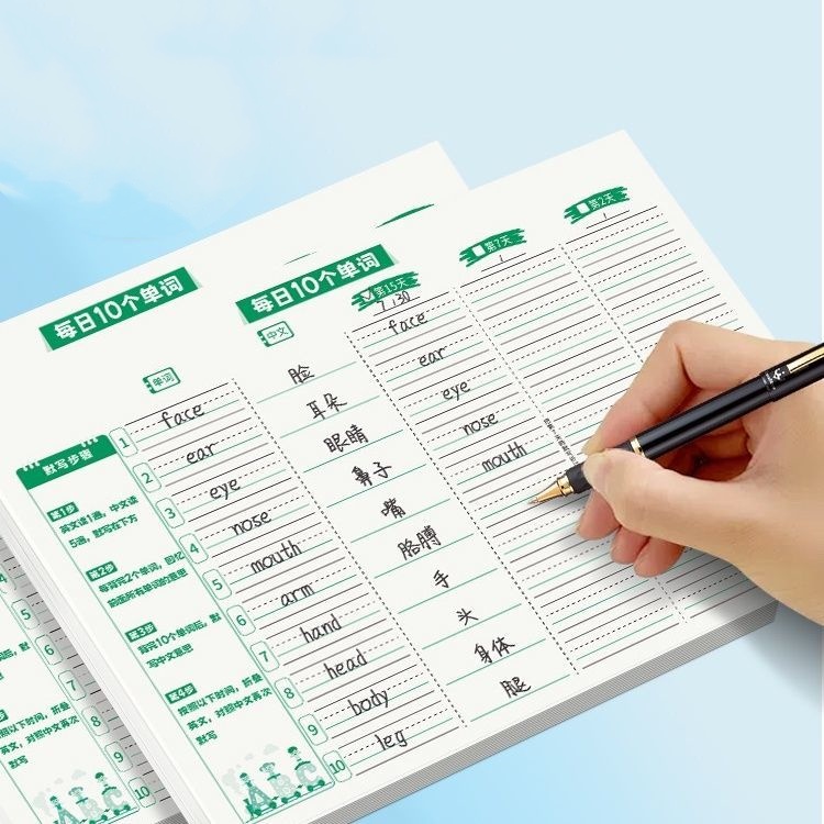 Daily 10 Words Ebbinghaus Forgetting Curve Memory Method – Thick English Word Writing Notebook for Elementary School