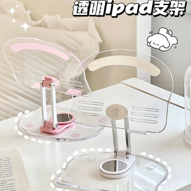 Desktop Phone and Tablet Stand, Acrylic Transparent iPad Stand for Students, Dormitory Reading Support Rack