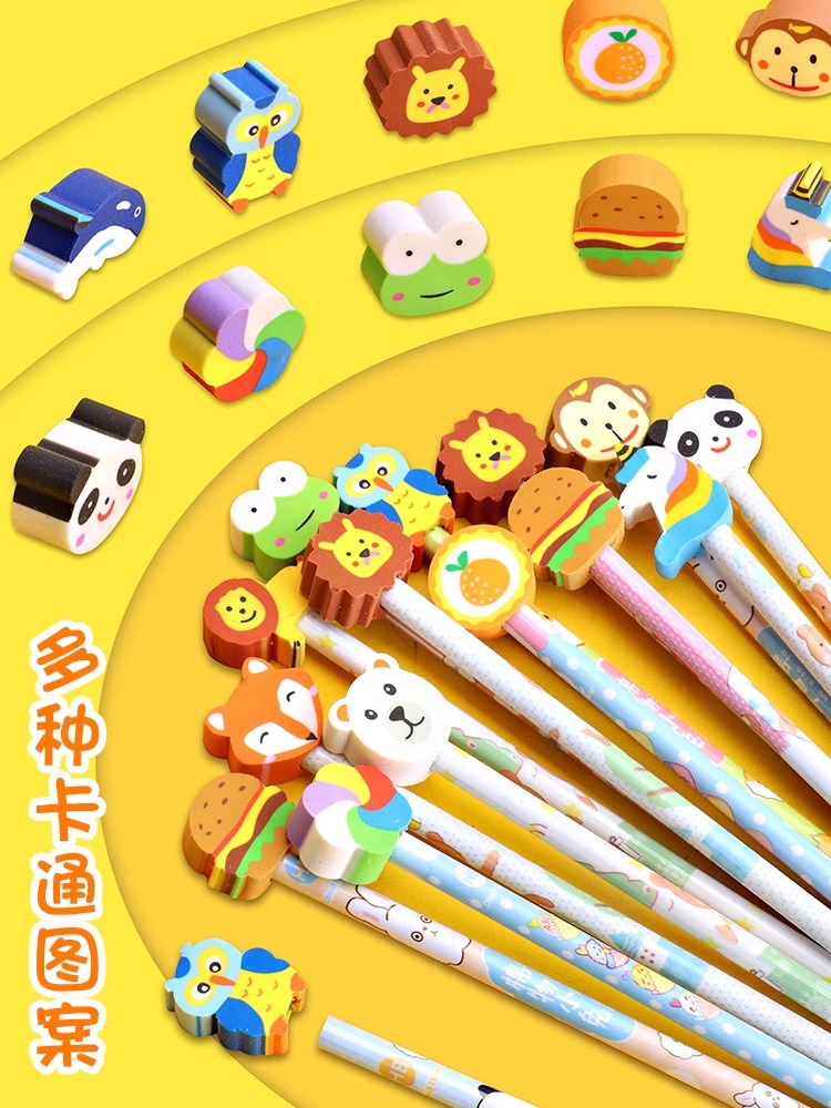 Elementary School Pencil Cute Eco-friendly Prize Cartoon Kindergarten Learning Supplies with Eraser