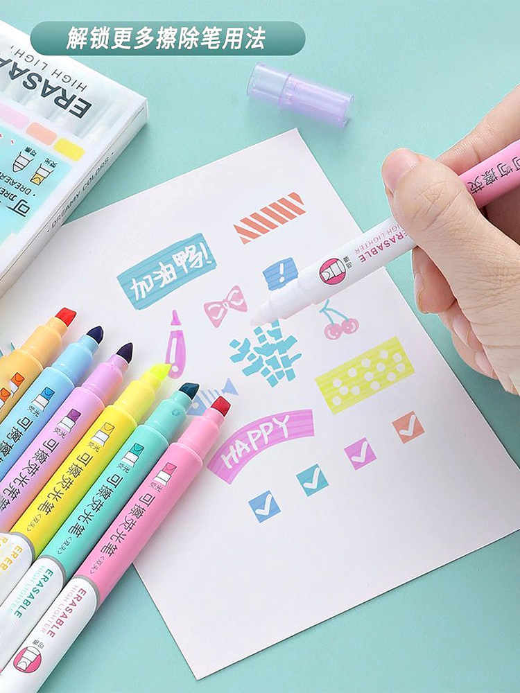 Erasable Highlighter, Double-Headed 6-Color Marker Pen, Eye-Caring Marking Pen for Students, Colorful Highlighting Pen