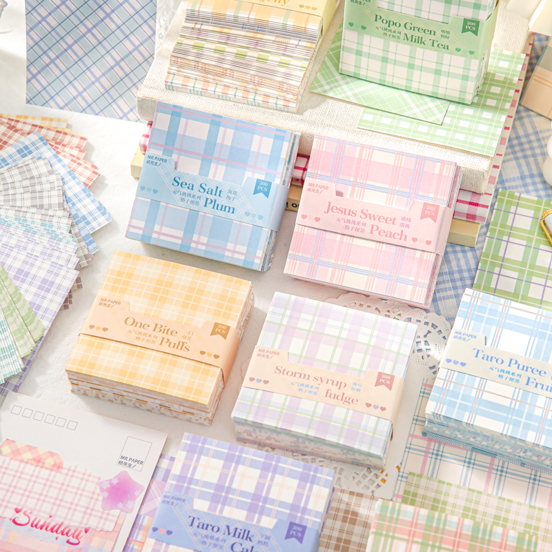 Energetic Peach Checkered Sticky Notes, Colorful Plaid Non-adhesive Salt System Journal Decoration Background Material Paper