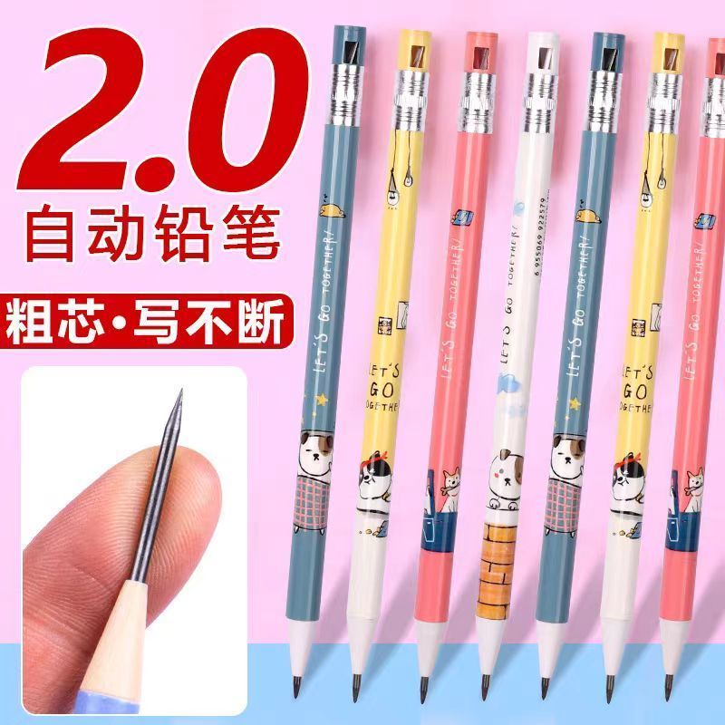 Elementary School Student 2.0 Automatic Pencil 2B Children’s Cartoon Cute Non-stop Activity Pencil Thick Core Automatic Pencil Set