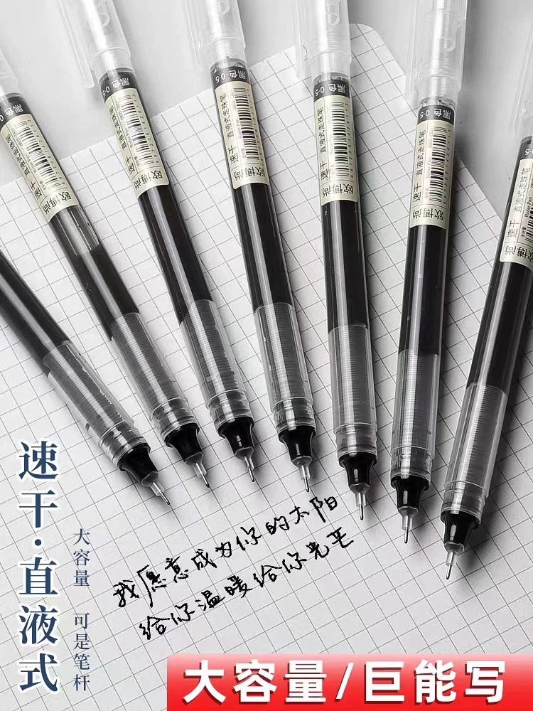 Liquid Fast-Drying Rollerball Pen, Gel Pen for Students, Full Needle Tube, Large Capacity Black Fast-Drying Pen 0.5 for Exams