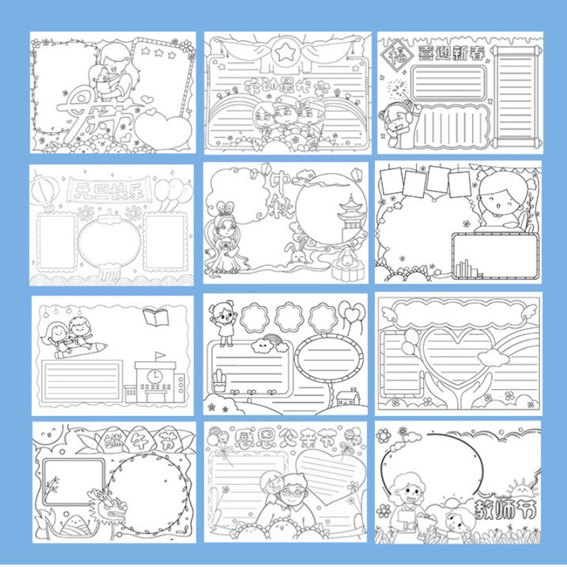 Back to School Season Handwritten Report Template for Primary and Middle School Students, Various Holiday Themes