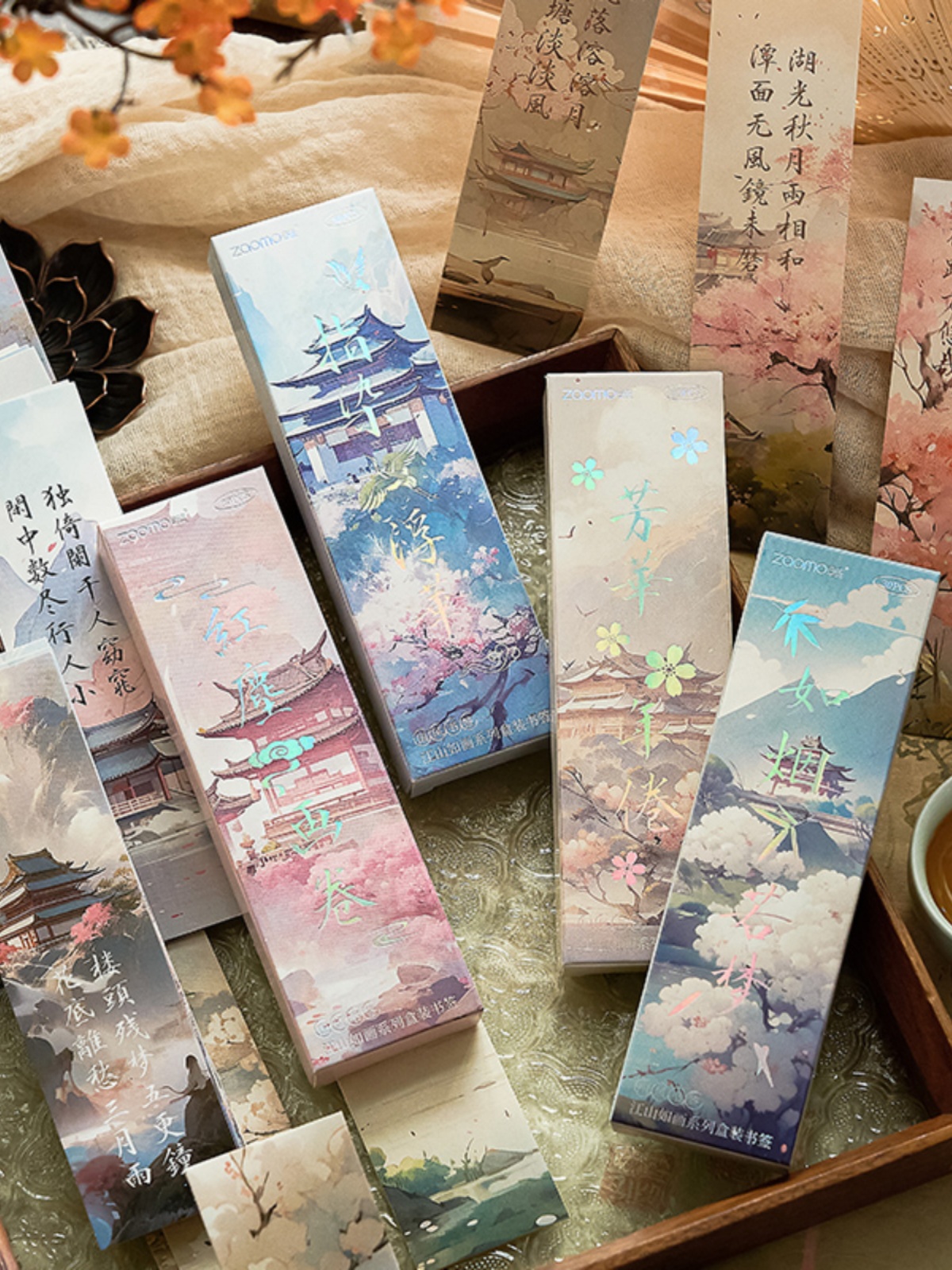 Beautiful Scenery 30 Chinese Style High-Quality Poetry and Famous Paintings Paper Bookmarks for Students
