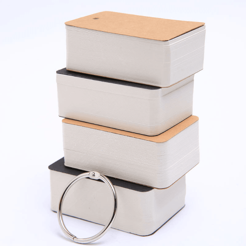Blank Cards for English Vocabulary, White Hard Card Paper, Portable Memory Ring with Hole for Handwriting