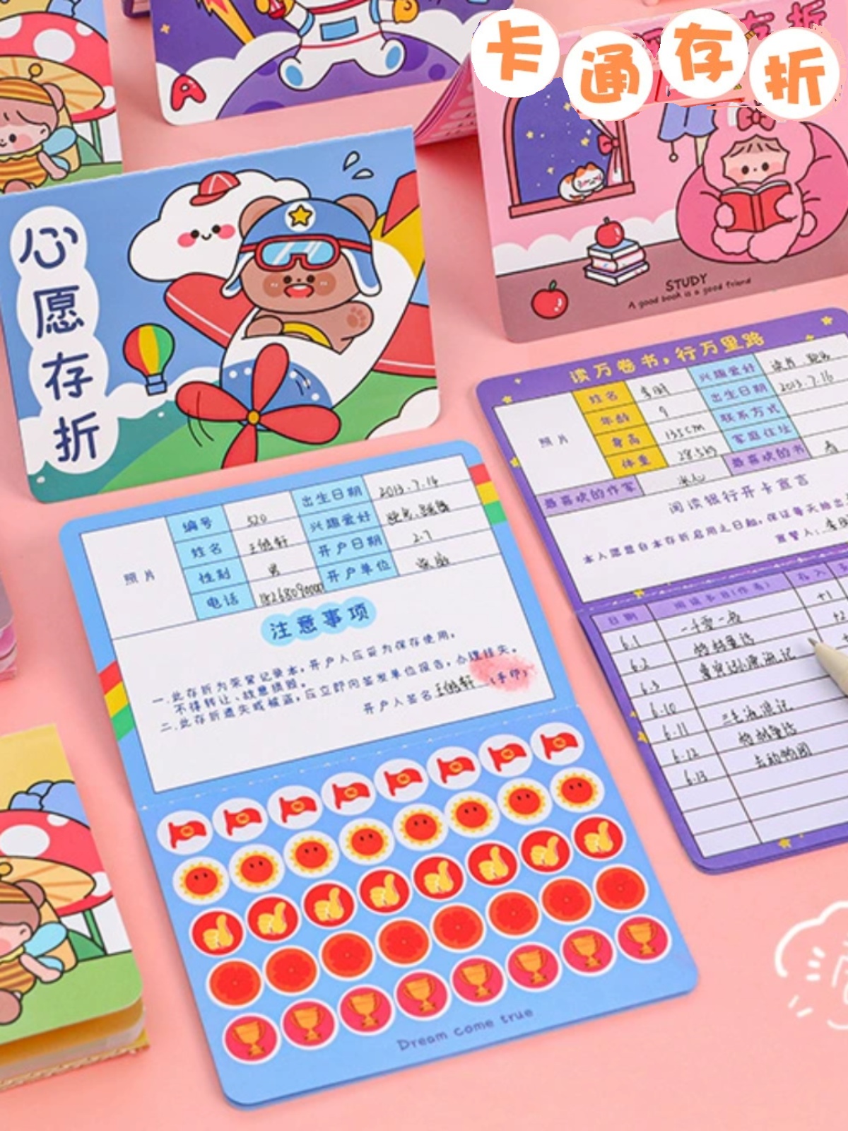 Children’s Cute Wish Savings Book, Reading Plan Check-in Book for Students