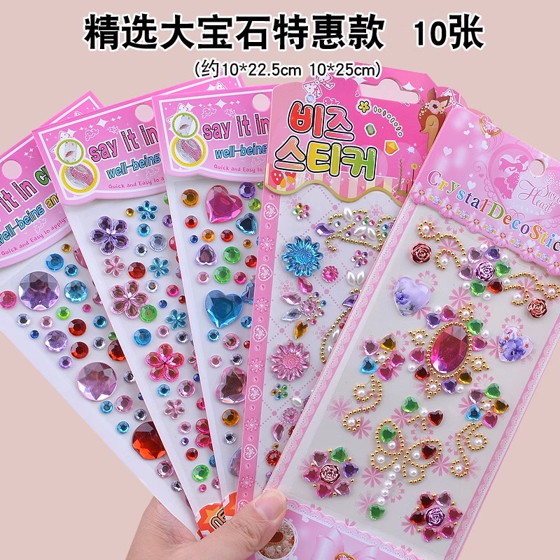 Children’s Gem Stickers Crystal Diamond Cartoon Stickers Girl Toys Princess Reward Stickers Dress-Up Birthday Bubbles