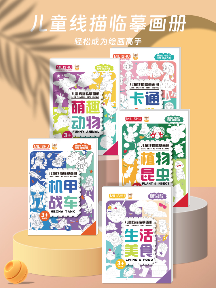 Children’s Line Drawing Copybook Simple Drawing Hand-Drawn Book Draft Anime Coloring Training Sketching Beginner Drawing Book
