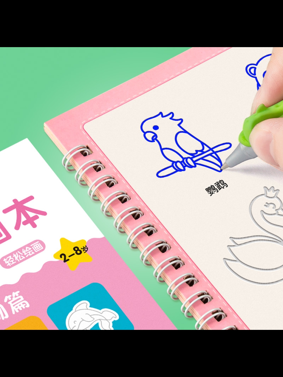 Children’s Groove Control Pen Training Drawing Book, 8 Books for Ages 2-8, Reusable