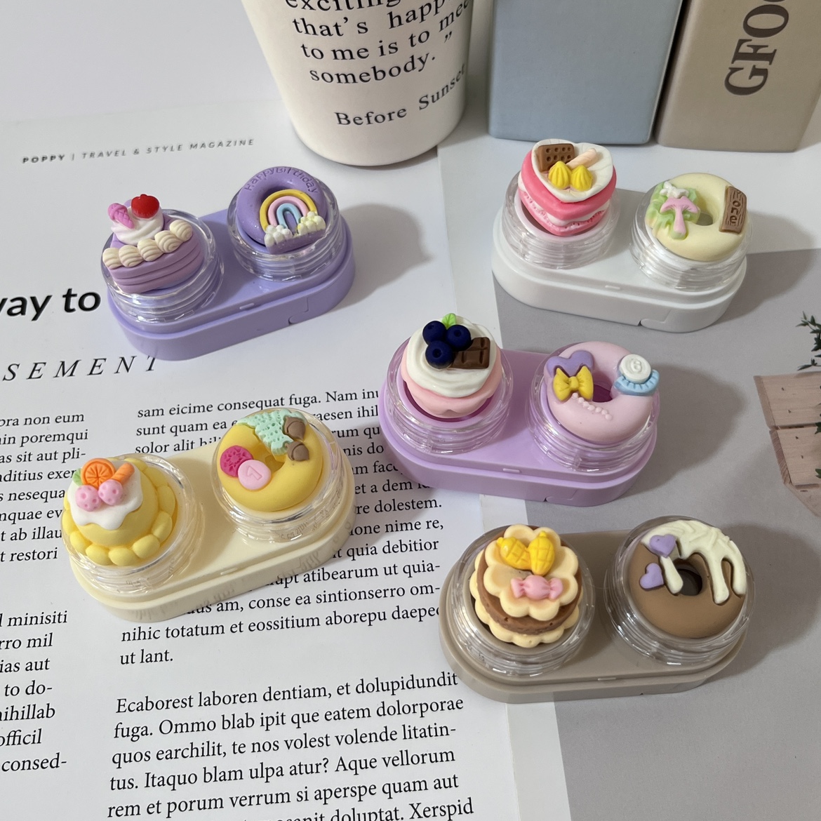 Creative Personalized Cake Invisible Contact Lens Case, Cute Portable Dual Care Box
