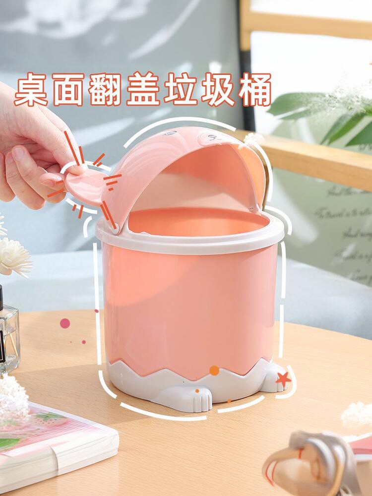 Creative Cute Desktop Trash Can, Home Living Room Simple Covered Mini Flip Plastic Trash Bin
