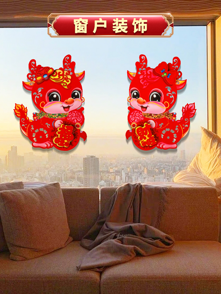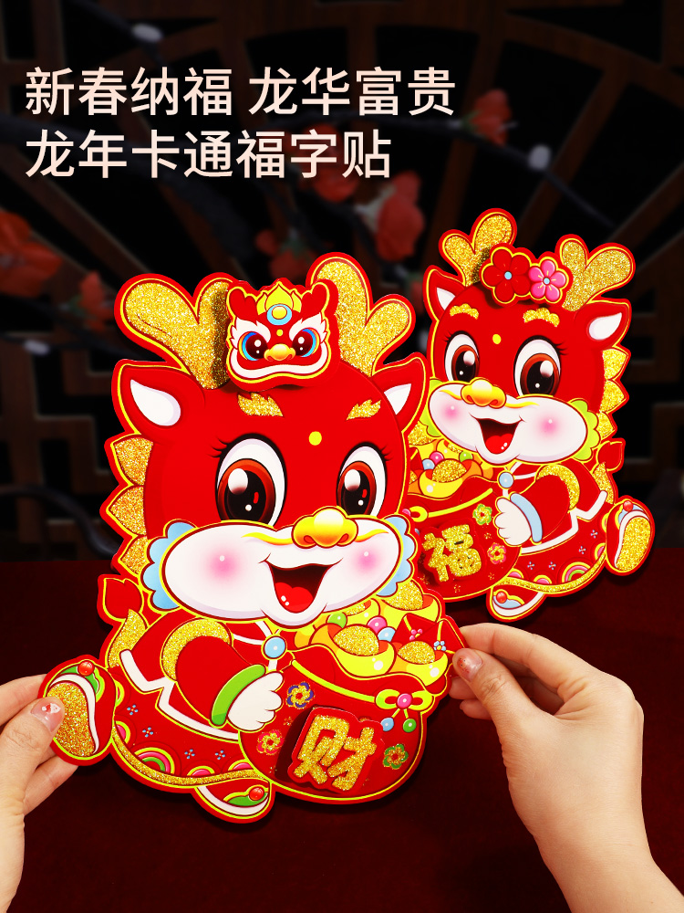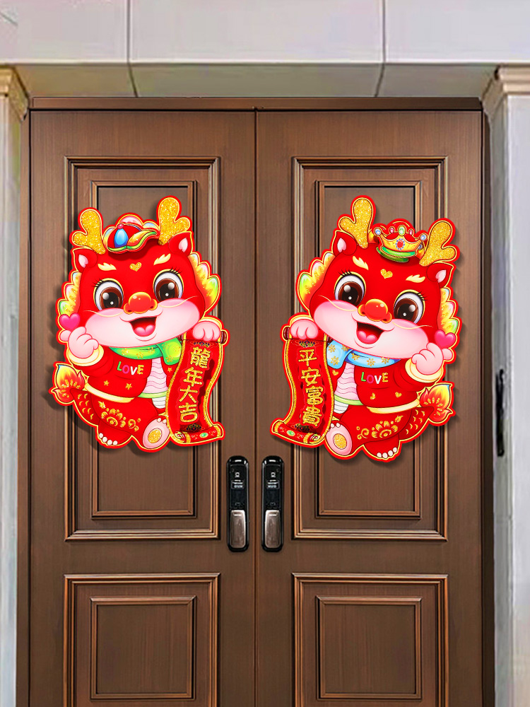 2024 New Year Dragon Year Door Sticker Velvet Zodiac Dragon Decoration quantity