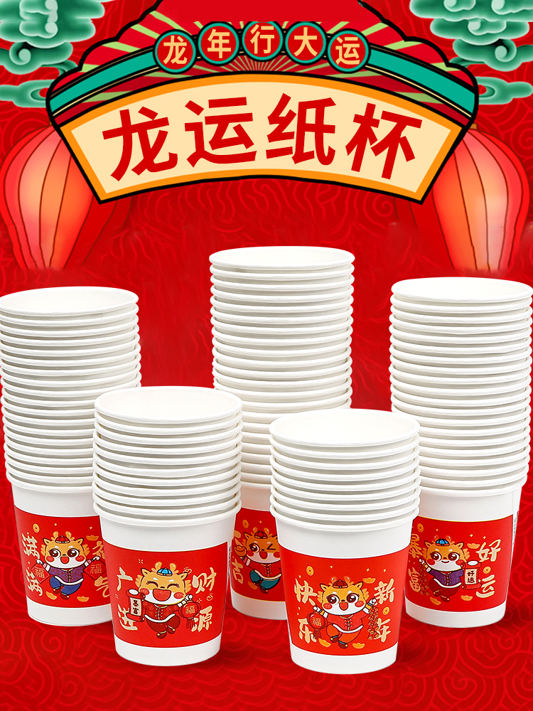 2024 Year of the Dragon Paper Cups New Year Disposable Cups Thickened Household Water Cups Tea Cups