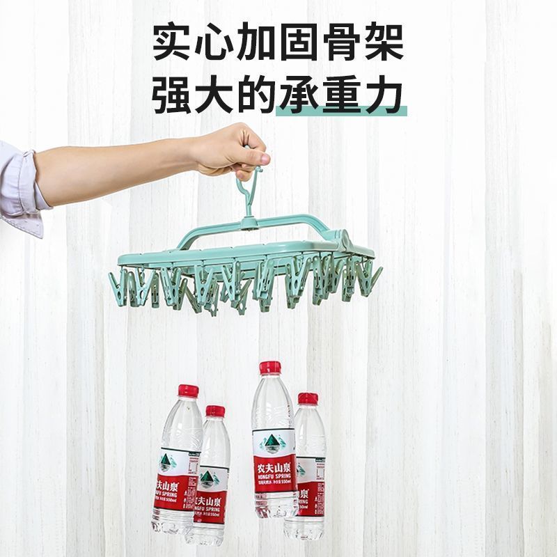 24-Clip Folding Drying Rack Multi-Clip Version Student Dormitory Sock Drying Windproof Thickened Hanger Balcony Underwear Drying Rack quantity