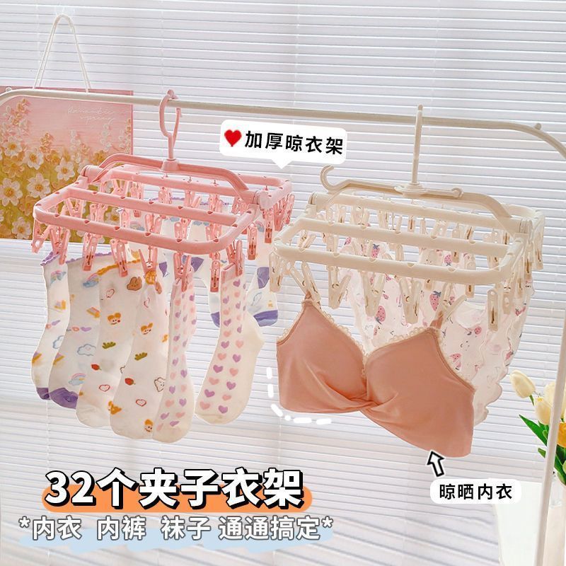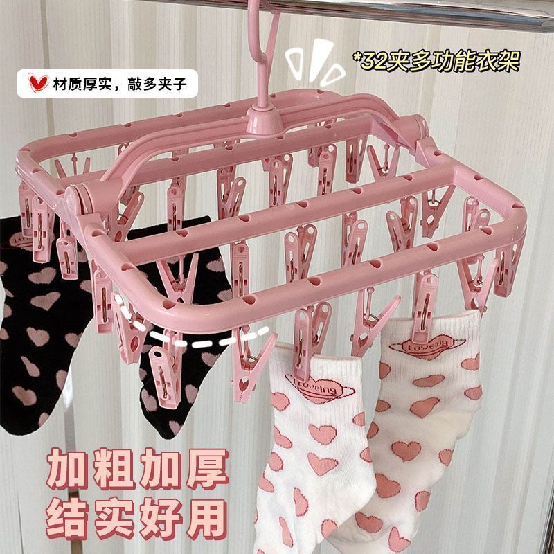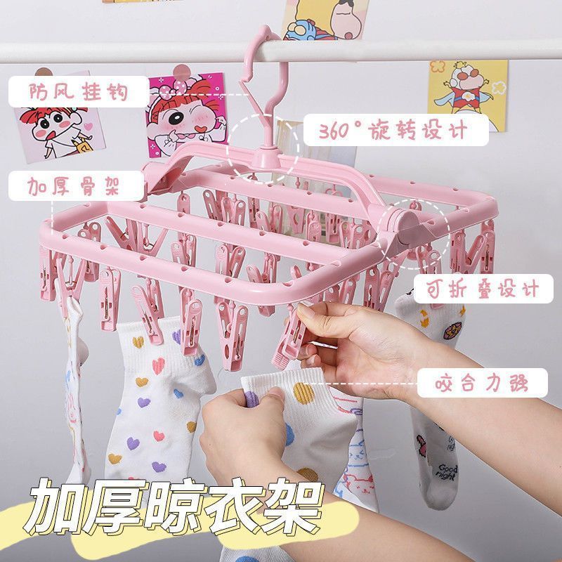 24-Clip Folding Drying Rack Multi-Clip Version Student Dormitory Sock Drying Windproof Thickened Hanger Balcony Underwear Drying Rack