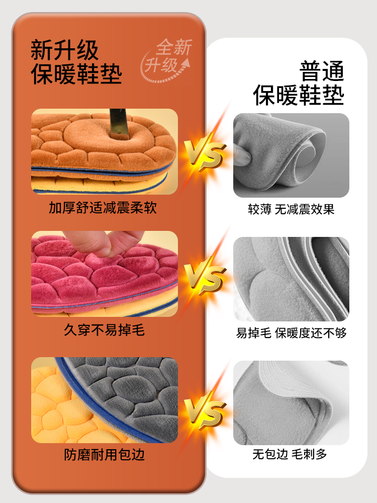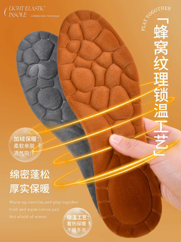 4D Warm Cotton Insoles, Thickened Breathable Sweat-Absorbent Odor-Resistant Insoles for Winter quantity