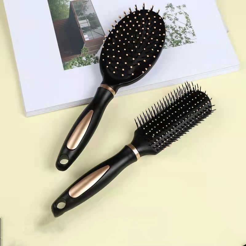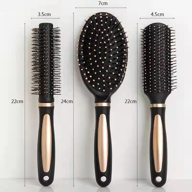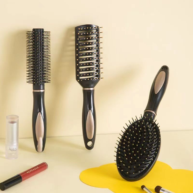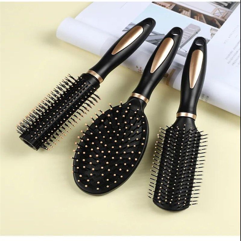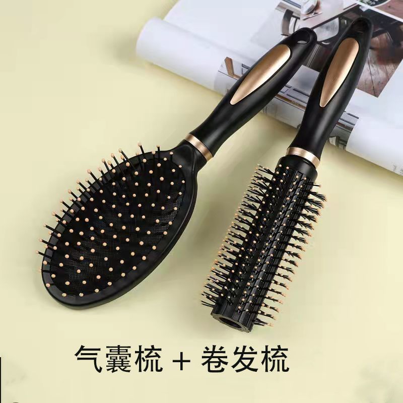 Round Barrel Curling Comb + Air Cushion Massage Comb (Black) with Hair Clips