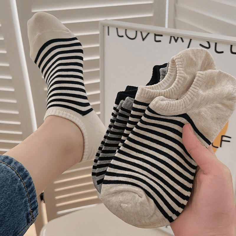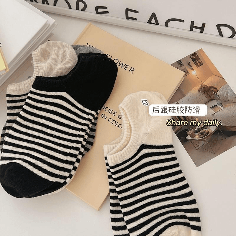 Air Low-Cut Short Tube Breathable Classic Striped Short Socks for Men and Women Ins Spring and Summer Student Black and White Versatile