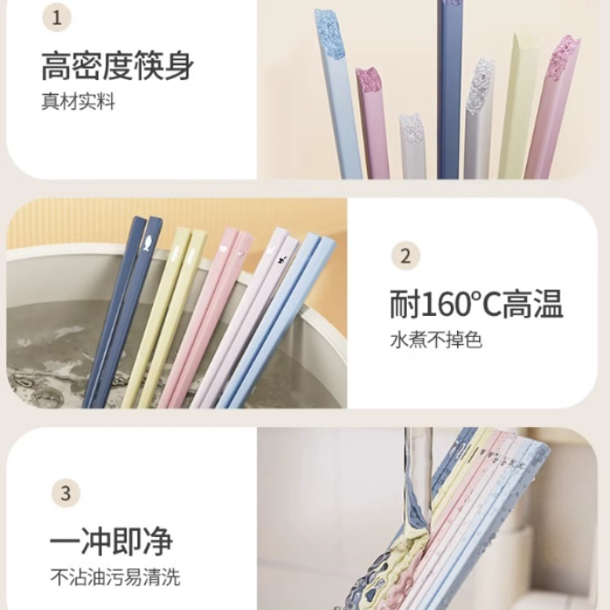 Alloy Chopsticks One Person One Chopstick Macaron Color Household High-Grade High-Temperature Easy to Clean Healthy Family Divided Meal Chopsticks quantity