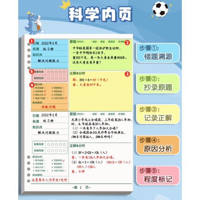 B5 Error Notebook for Primary School Students Loose-Leaf Math Correction Notebook Second Grade Error Collection Correction Book First Grade quantity
