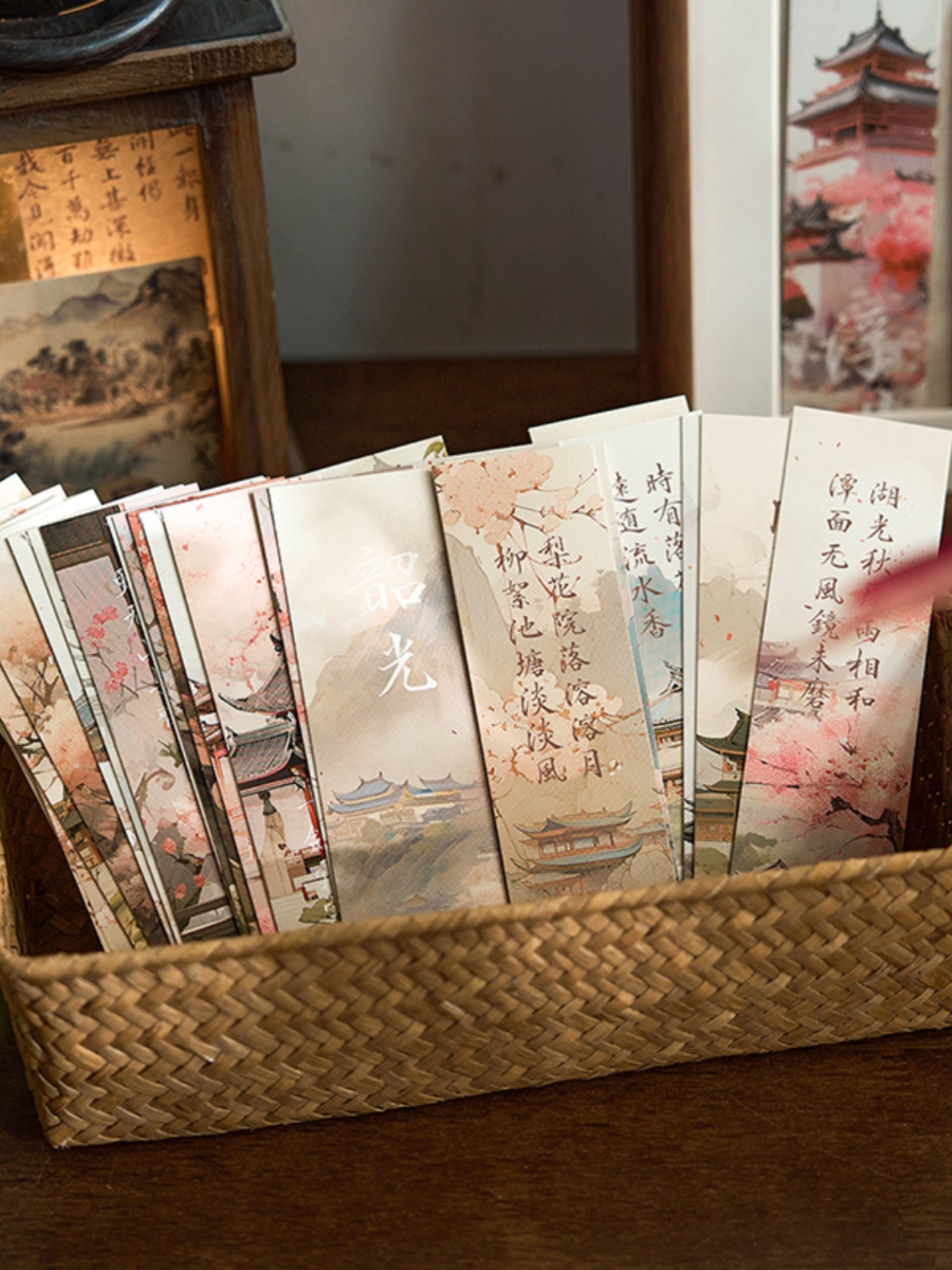 Beautiful Scenery 30 Chinese Style High-Quality Poetry and Famous Paintings Paper Bookmarks for Students quantity