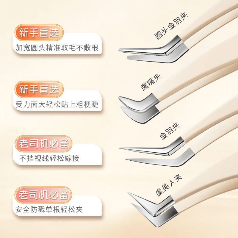 Beginner Eyelash Extension Tools, Stainless Steel High Precision False Eyelash Tweezers, Round Head Gold Feather Tweezers