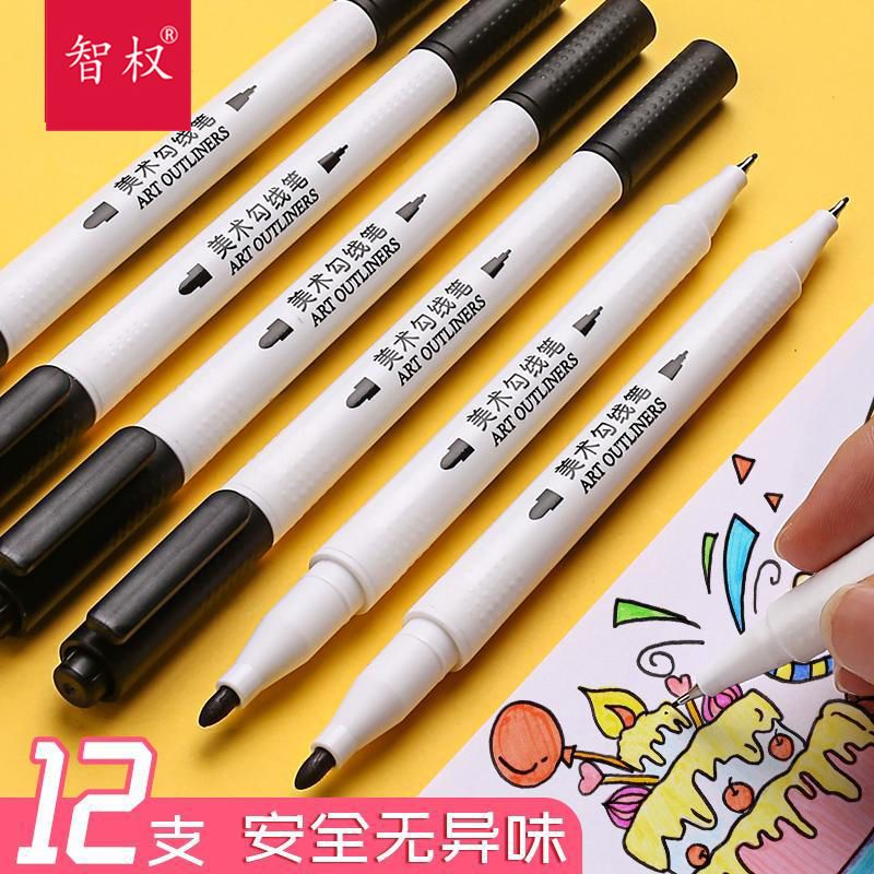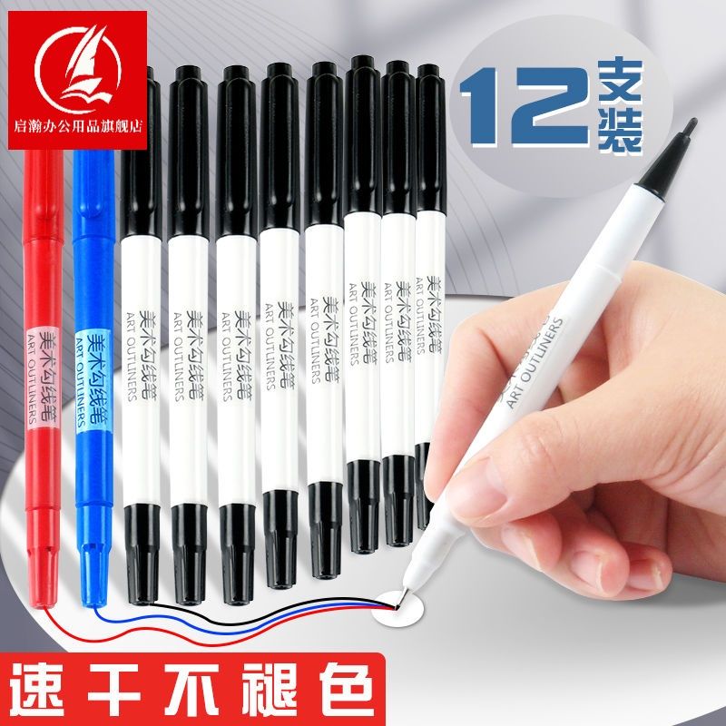 Black Water-Based Double-Headed Marker Fine Tip Hand-Painted Oil-Based Outline Pen Waterproof Art Outline Pen Children's Drawing quantity