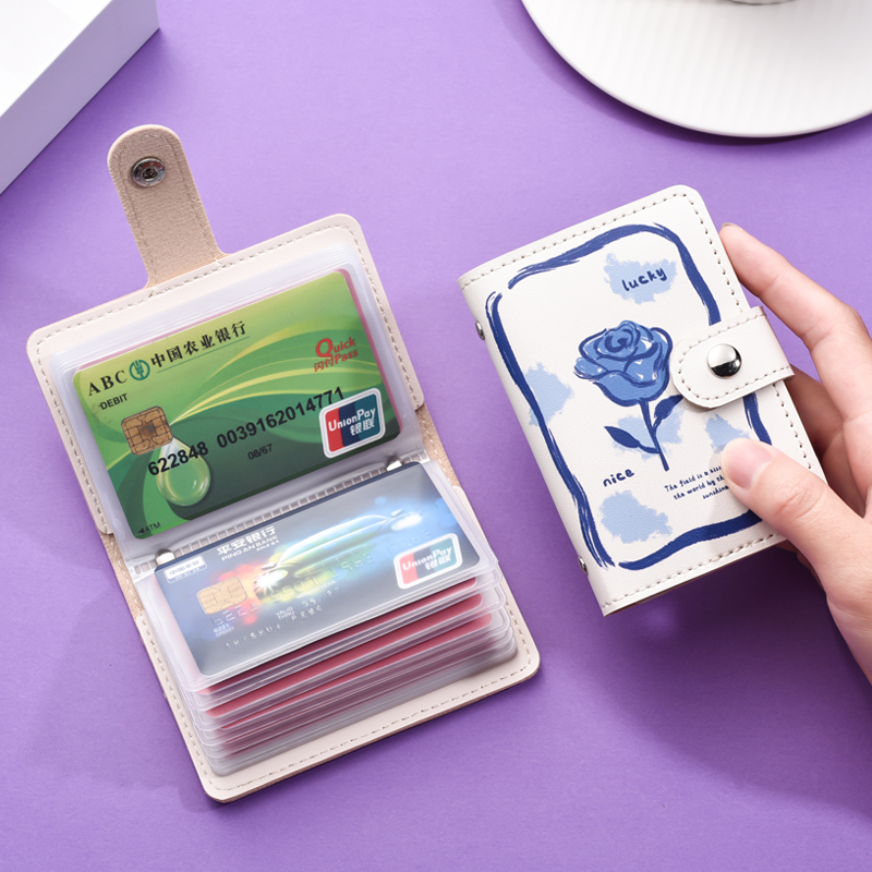 Blue Rose Card Holder for Women, Unique Personality, Large Capacity, Multi-Card Slot, Ultra-Thin, Compact Anti-Magnetic ID Holder quantity