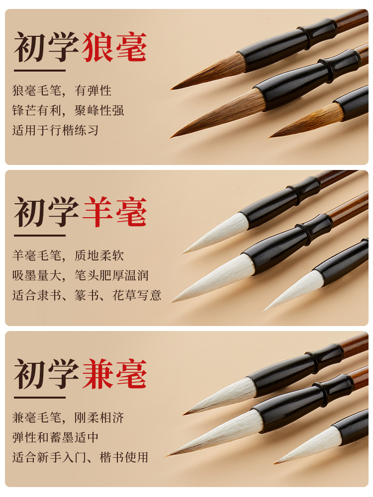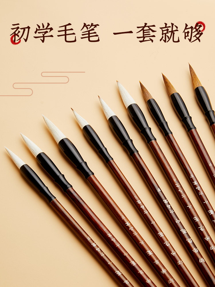 Brush Set for Beginners Pure Wolf Hair Mixed Hair Goat Hair Adult Entry-Level Large Medium Small Regular Calligraphy Brush quantity