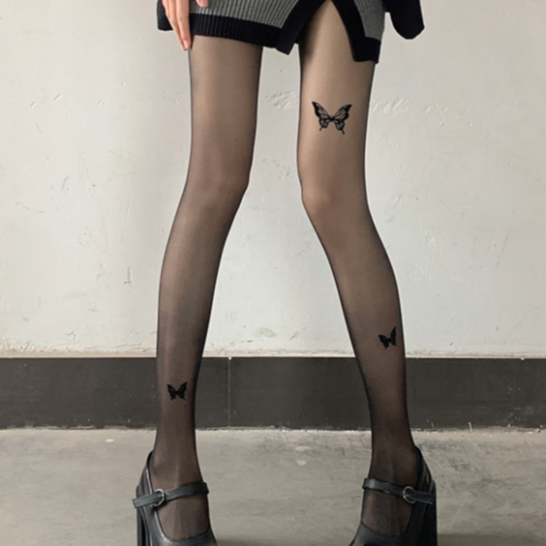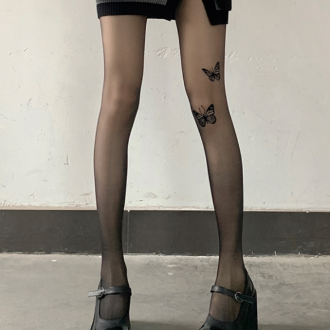 Butterfly Print Black Stockings for Women, Thin, Anti-Hook, 0D High Transparency, Sexy Leg Show for Spring and Autumn quantity