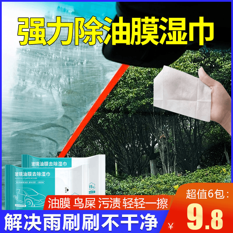 [Buy 1 Get 6 Packs] Glass Oil Film Removal Wipes Front Windshield Oil Cleaning Glass Car Supplies quantity
