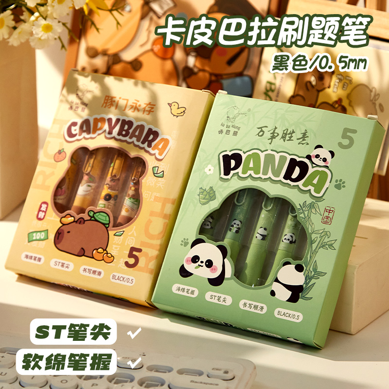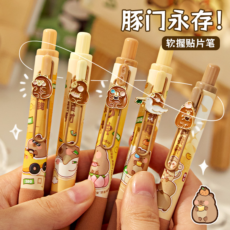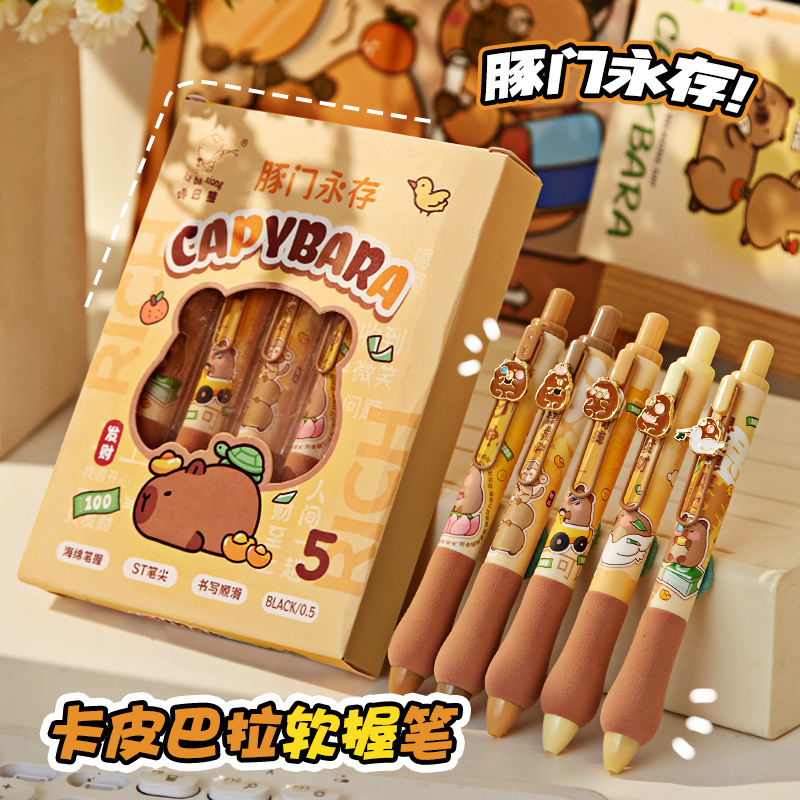 Capybara Push Button Gel Pen Black Quick-Drying Smooth Writing Pen for Elementary and Middle School Students quantity