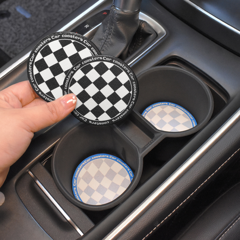 (2 Pieces) Black and White Checkered Coaster