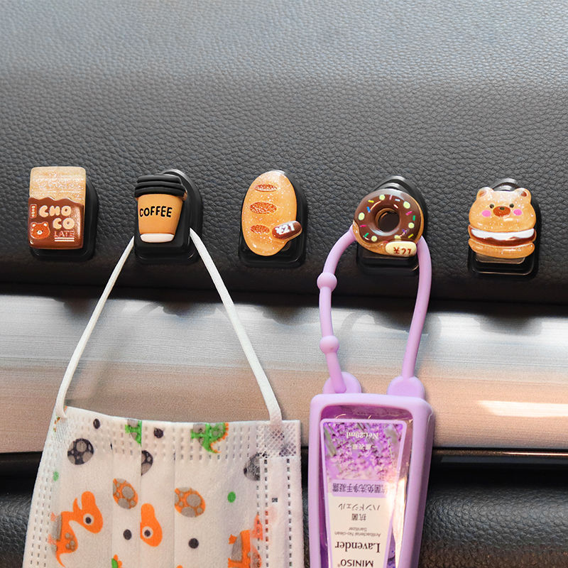 Car Hook Cute Bear Car Seat Back Hook Adhesive Car Accessories Front Row Small Hook