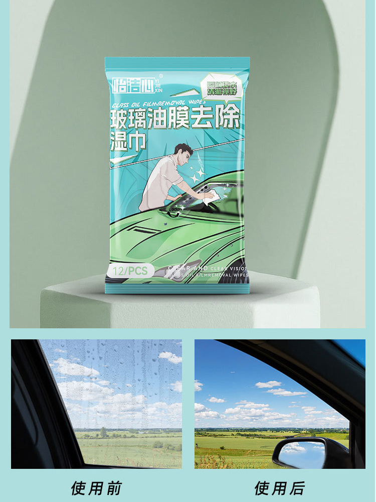 Car Oil Film Removal Wet Wipes, Heavy-Duty Oil Film Cleaner for Windshields, Powerful Car Window Cleaning Agent quantity