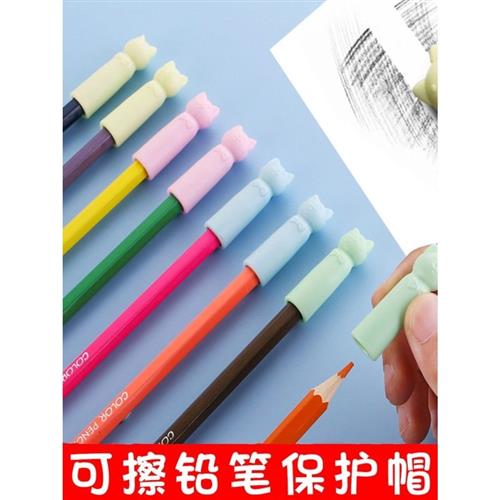 Cartoon Cat Pencil Case - Silicone Triangle Pencil Cap for Kids, Can Be Used as an Eraser quantity
