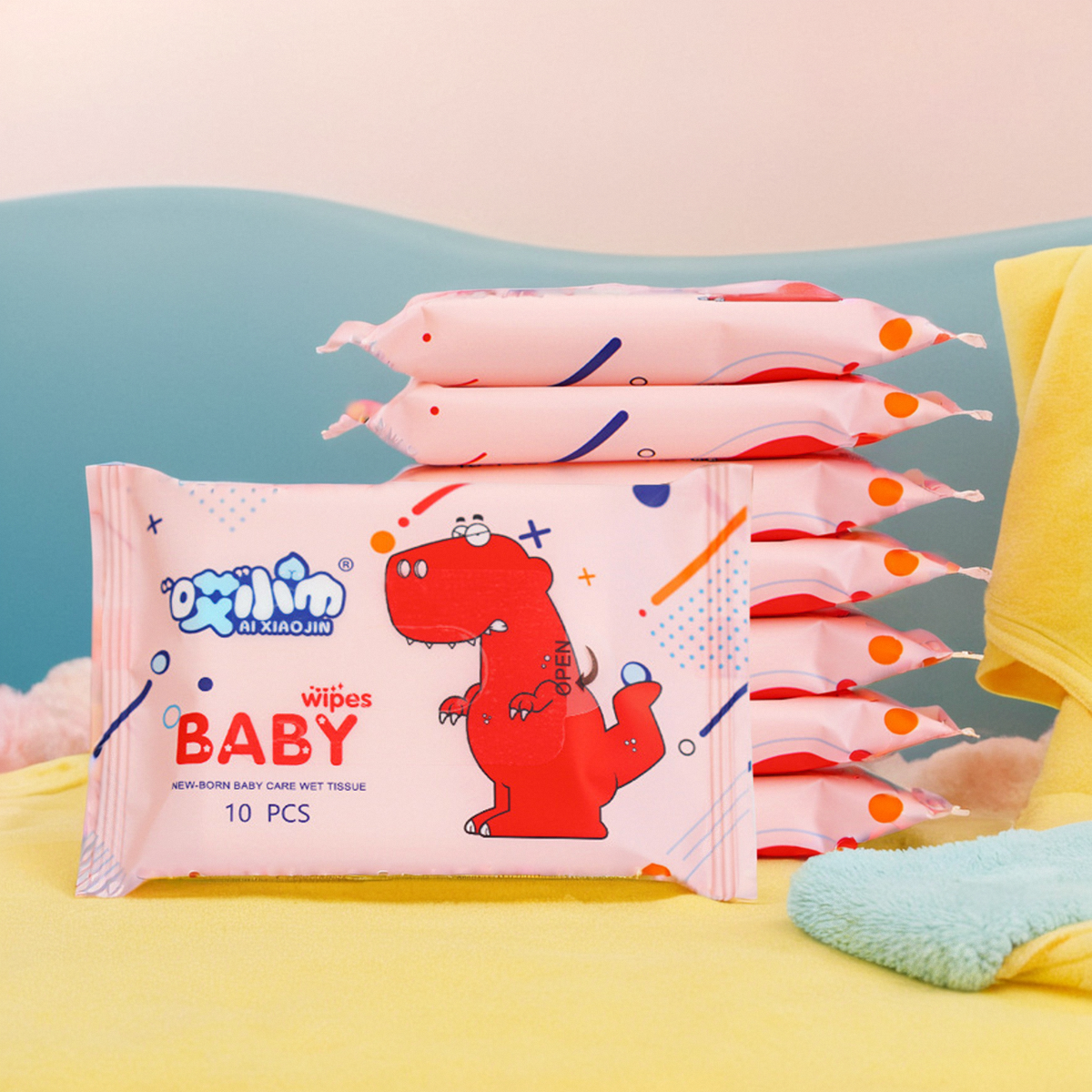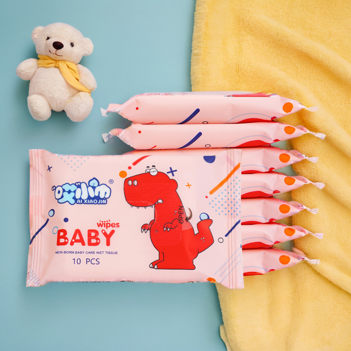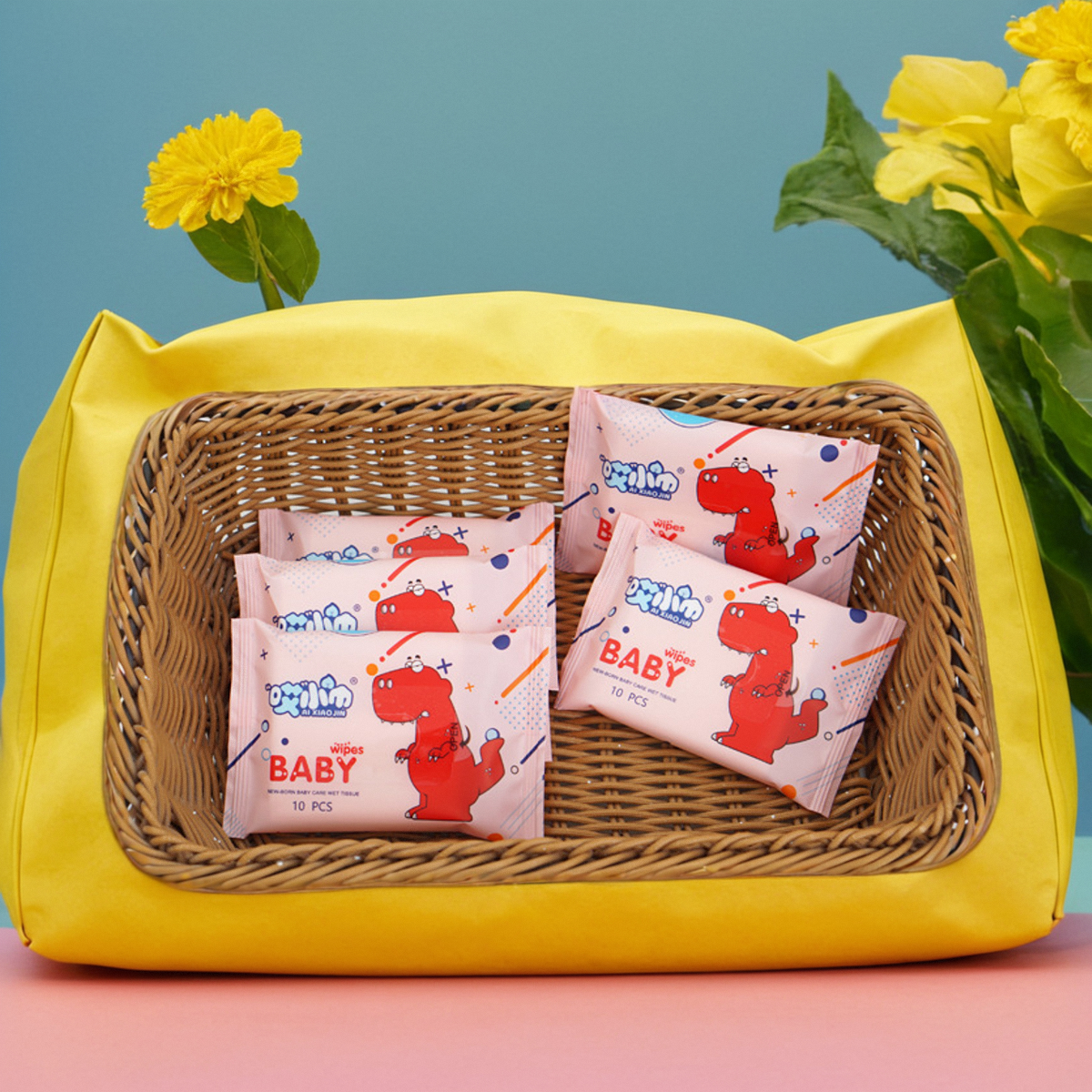 Cartoon Dragon Pattern 10-pack Wet Wipes Disposable Soft Skin-friendly for Children quantity