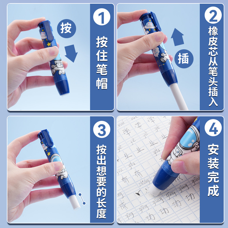 Cartoon Eraser, Retractable for Kids, Creative Space Astronaut Design