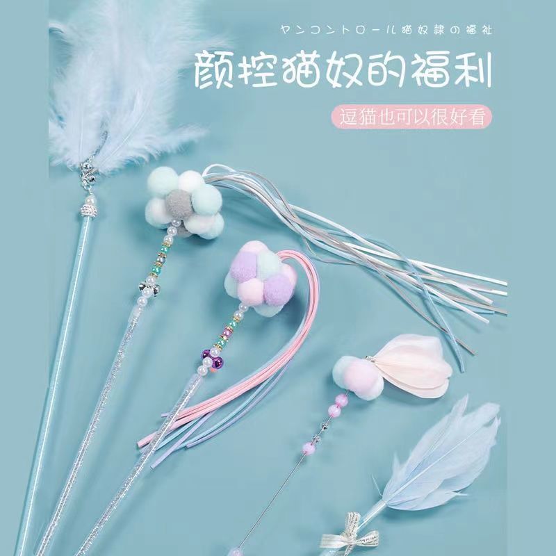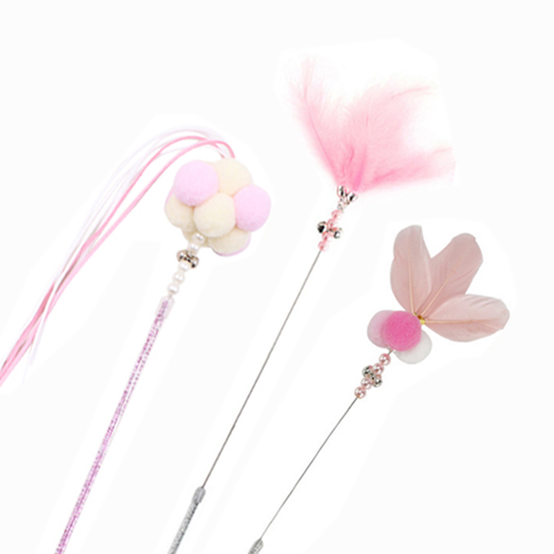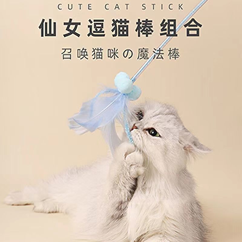 Cat Teaser Wand Fun Tool Self-playing with Bell Fairy Cat Teaser Wand Kitten Bite-resistant Replacement Head Cat Toy