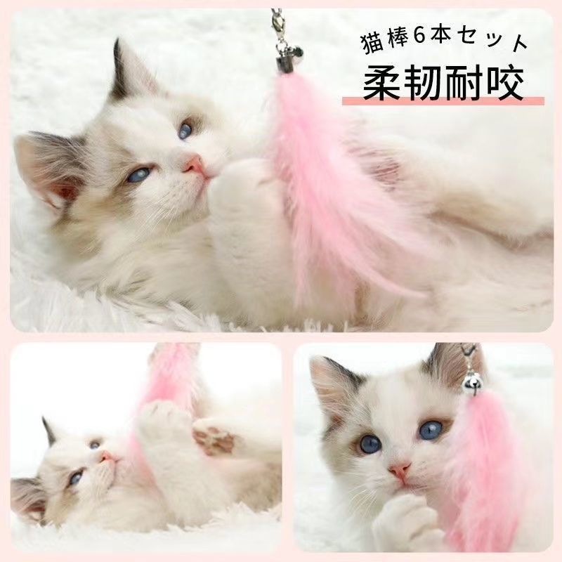 Cat Teaser Wand Fun Tool Self-playing with Bell Fairy Cat Teaser Wand Kitten Bite-resistant Replacement Head Cat Toy quantity