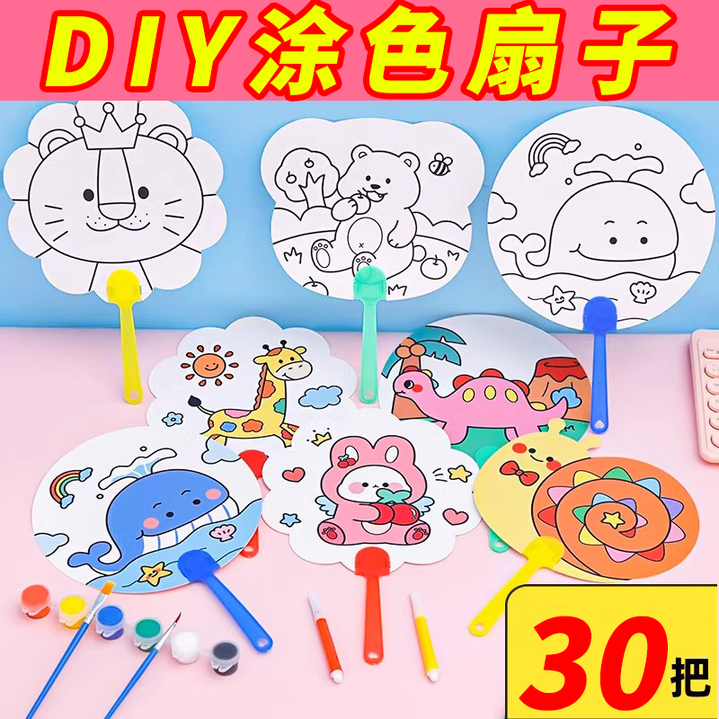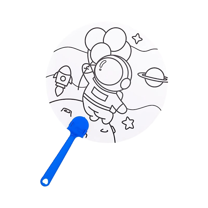 Children's DIY Blank Fan, Cartoon Round Fan for Coloring and Painting Materials quantity