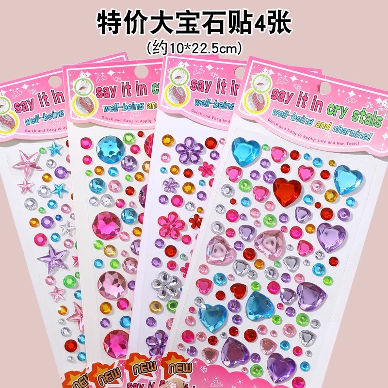 Children's Gem Stickers Crystal Diamond Cartoon Stickers Girl Toys Princess Reward Stickers Dress-Up Birthday Bubbles quantity