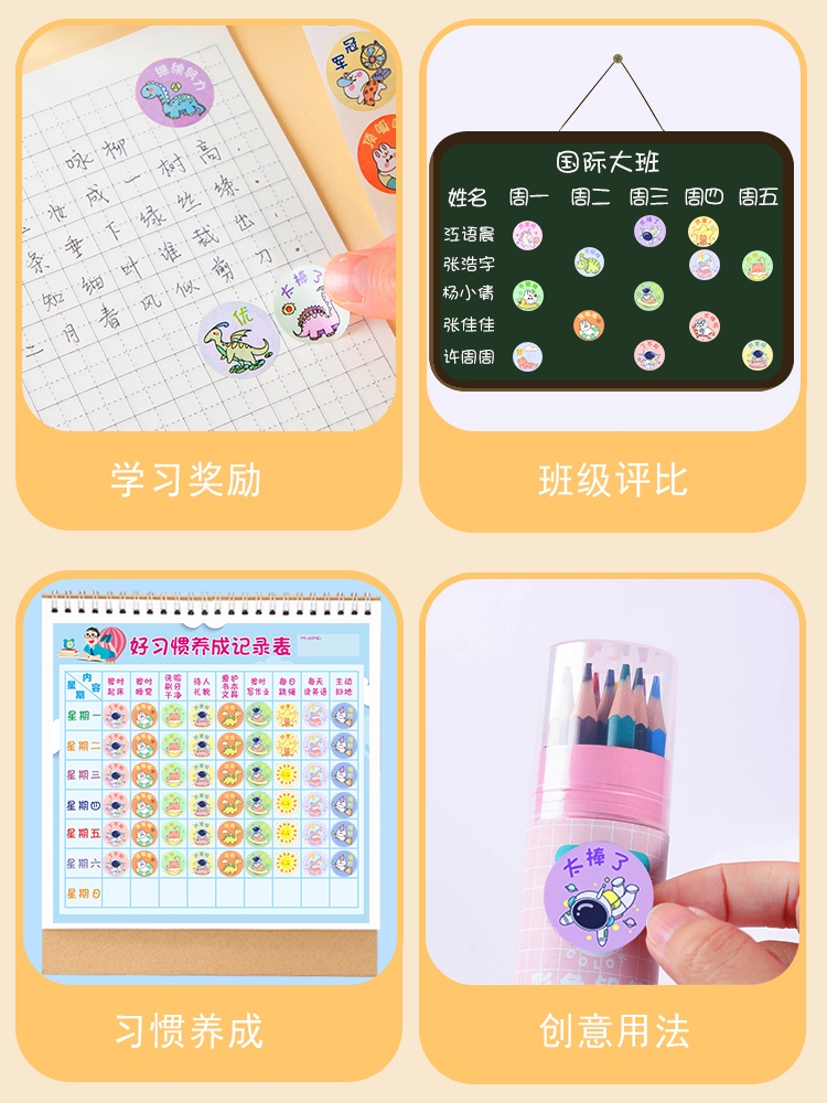 Children's Reward Stickers, Praise Stickers for Primary School Girls, Cartoon Decorative Patterns quantity