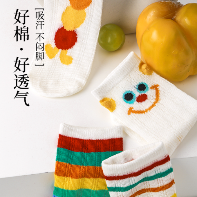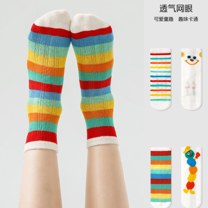 Children's Socks Summer Thin Spring and Summer Boys and Girls Short Socks Rainbow Trendy Cotton Breathable quantity