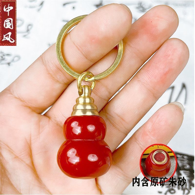 Cinnabar Copper Portable Hollow Gourd Pendant Car Keychain Creative Rabbit Year Fortune Couple Pendant